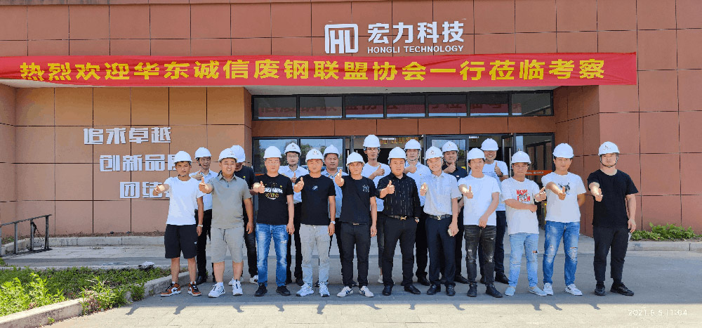 2021年6月5日早上,華東誠信廢鋼聯盟考察團一行20余人蒞臨宏力科技總部參觀,首先,董事長李文彪先生在二樓會議室對李會長一行表示熱烈歡迎,并在辦公樓前合影留念。