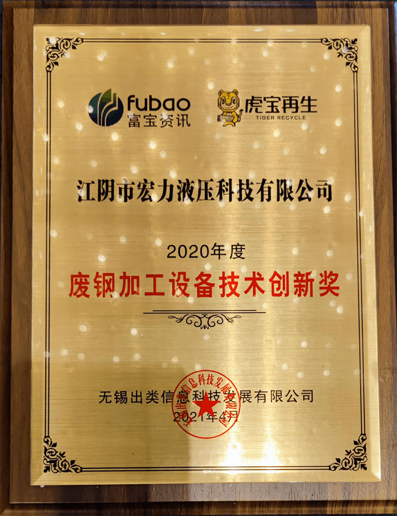 宏力科技自2018.1.18創(chuàng)立以來(lái),先后獲得ISO國(guó)際質(zhì)量體系認(rèn)證、歐盟CE認(rèn)證3項(xiàng)、國(guó)家知識(shí)產(chǎn)權(quán)局頒發(fā)的核心專利15項(xiàng)、江蘇省民營(yíng)科技企業(yè)、江蘇省科技型中小企業(yè)、產(chǎn)學(xué)研合作基地、再生資源裝備工程技術(shù)研究中心、廢鋼加工設(shè)備服務(wù)模范企業(yè)、廢鋼加工設(shè)備技術(shù)創(chuàng)新獎(jiǎng)、科技創(chuàng)新獎(jiǎng)等幾十項(xiàng)殊榮。