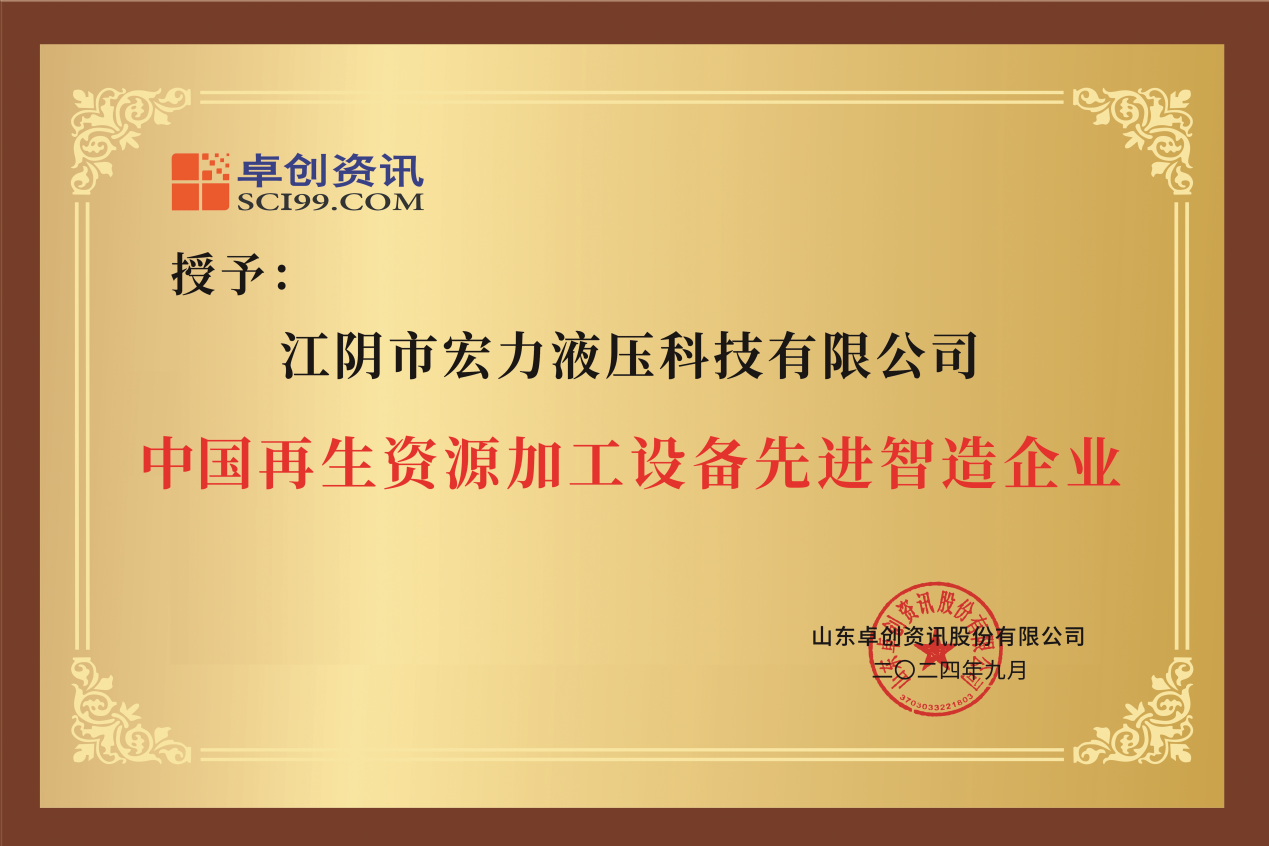 宏力科技憑借其在廢鋼加工設備領域的卓越表現和創新實力,榮獲了“中國再生資源加工設備先進智造企業”的殊榮,此項殊榮不僅是對宏力科技辛勤耕耘和不懈努力的認可,更是對其在推動再生資源產業綠色、循環發展方面所作貢獻的肯定。