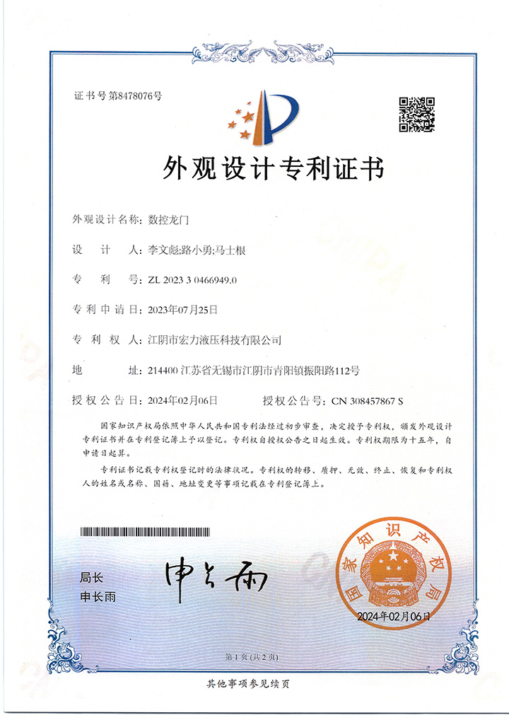 外觀設(shè)計(jì)專利證書